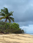 palm trees and sun baked sand at mission beach, north queensland, australia
