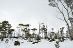 rows of trees and winter snow at walls of jerusalem national park, tasmania