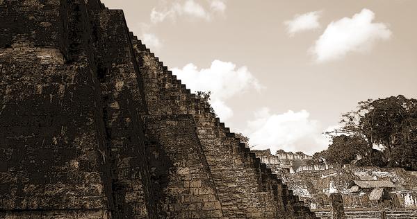Steep Steps up the side of a mayan temples at Tikal Guatemala.