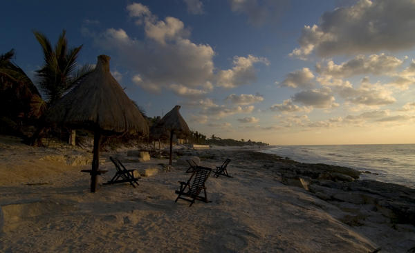 A quiet start to the day on the beach at Tulum, Mexico