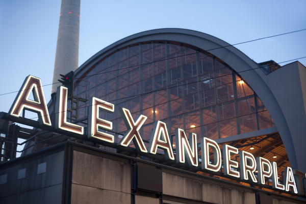 square, urban, information, sign, name, travel, station, tourism, city, window, famous, illuminated, word, neon, germany, berlin, alexanderplatz, bahnhof, arched, lettering