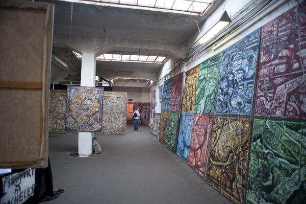 Interior of the Kunsthaus Tacheles , Berlin, a former collective art squat showing a gallery space displaying contemporary art