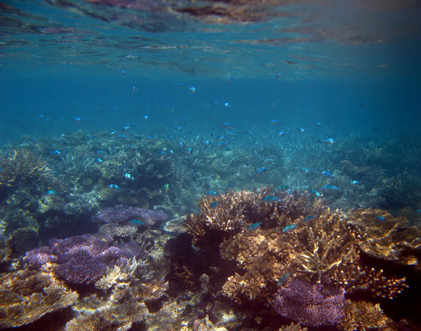 fiji, fish, shoal, corals, colorful, purple, underwater, subaquatic, surface, reflection, shallow, marine