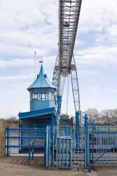 Historic Transporter Bridge, Newport, Wales, with its suspended motorised gondola that is used to ferry cars and people across the River Usk