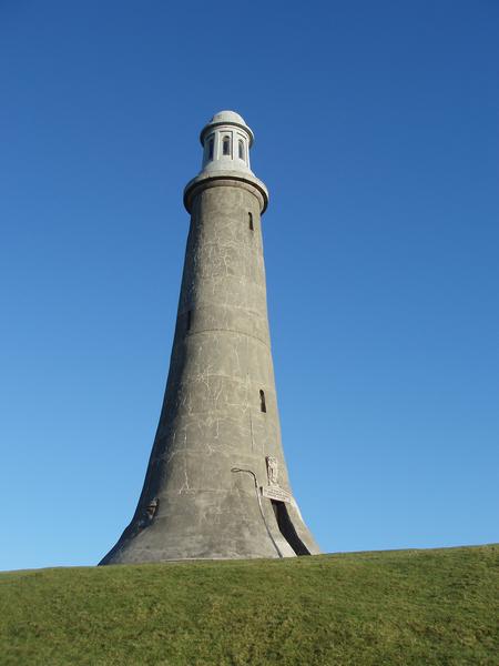 wide angle view of the 100ft monument to sir john barrow, ulverston, cumbria
