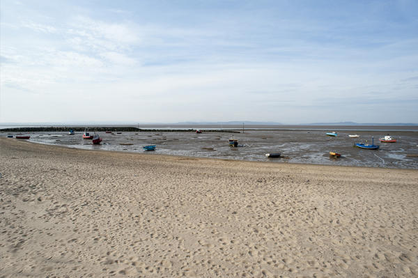 beached, blue sky, boats, england, harbor, harbour, horizon, lancashire, low tide, low-tide, many, morecambe, ocean, sand, sea, small, traditional, uk, united kingdom, white clouds