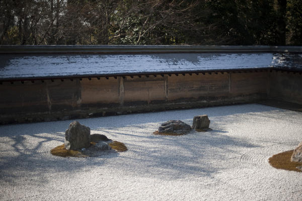 The famous karesansui (dry landscape) stone garden at Ryoan-ji