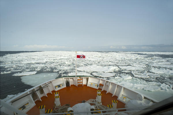 Heading into an ice drift on an ice breaker ship
