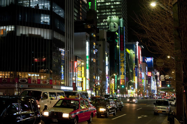 traffic flowing along a street in akihabara tokyo