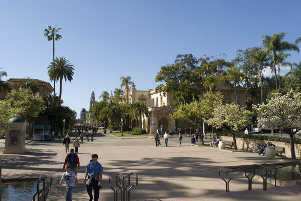 el parado, san diego, balboa park, pan american expo, buildings, facade, concrete, historic, decorative, pretty, landmark, attraction, Panama-California Exposition, 1915-1916, sun, people