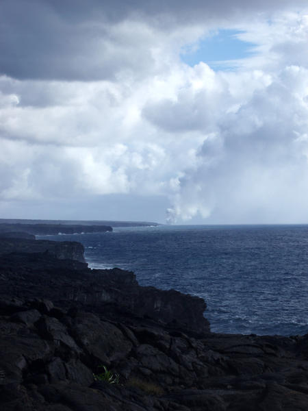 hawaii, steam, volcanic, black rocks, coast, coastline, rugged, Kalapana, plume, smoke, volcano