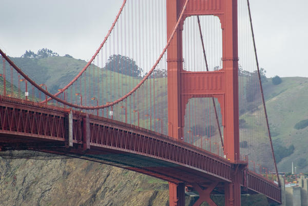 landmark, san francisco, icon, iconic, red, painted, structure, suspension, crossing, goldengate, girders, cables, rivets, rivvets, engineering, road, highway, bridge deck, curve, span