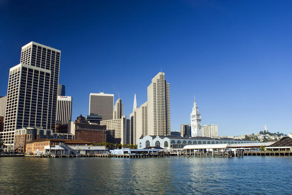 port of san francisco building and the embarcadero centre, the coit tower in the distance on the rear right