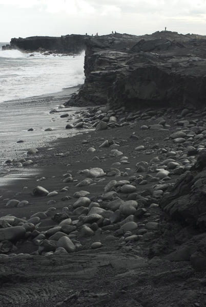 black volcanic beach on the hawaiian coast