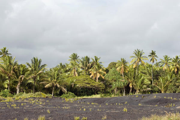 lava flow, town cut off, destroyed, black, volcanic, cold, solidified, plam trees, edge, flow, Kalapana