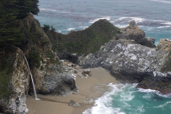 Big Sur, Julia Pfeiffer Burns State Park, natural wonder, nature, Monterey county, california, view, vista, landscape, landmark, tourist attraction, cascade, ocean, beach, blue, green, aquamarine License: