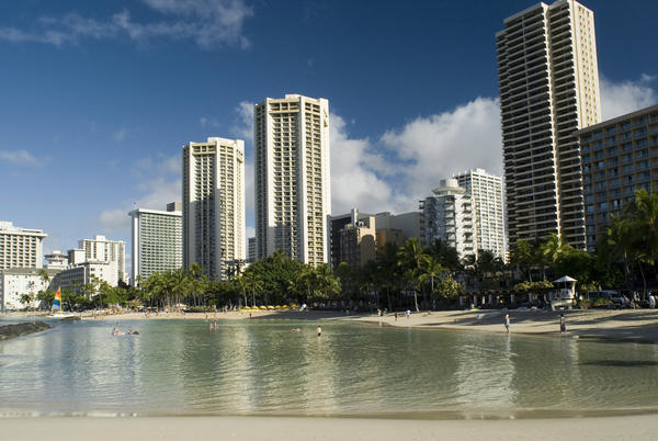 holiday resort hotels and a swimming lagoon, waikiki beach honolulu, hawaii