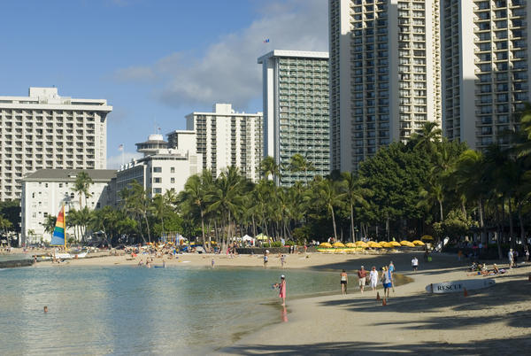 waikiki, waikki, honolulu, hawaii, ohau, island, holiday, beach, resort, tourist, travel, vacation, rest, sea, ocean, blue, sky, sun, recoperation