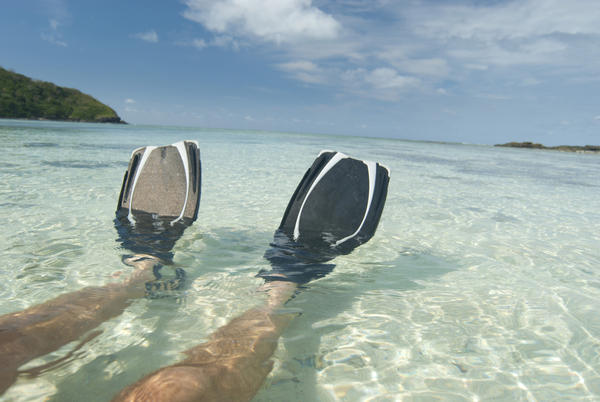 vacation, man, travel, holiday, equipment, ocean, tropical, recreation, swimming, swim, floating, feet, flippers, watersport, fiji