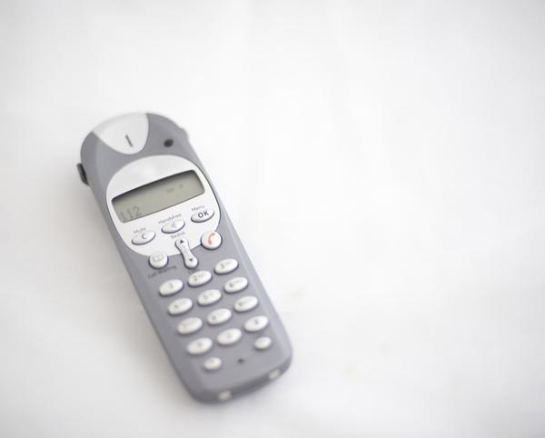 a cordpess phone with the international emergency number on the display 112