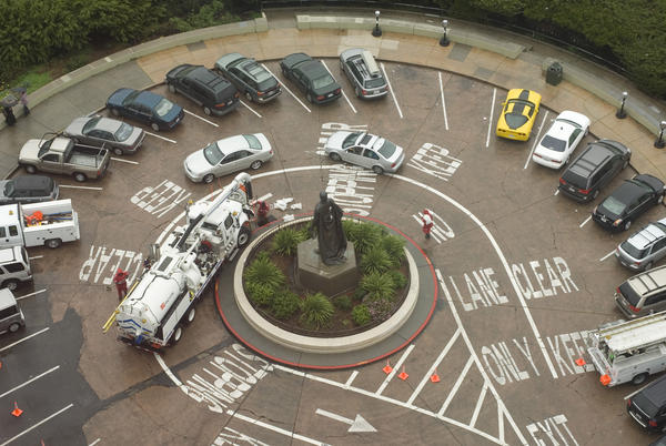 roundabout, look down. viewed from above, coit tower, cars, circle, parking, parked, round about, rotary