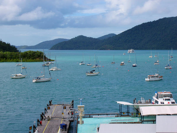shute harour, boats, moorings, anchored, shelter, islands, australia, ferry terminal, jetty, blue, sky, tropics, yachts, yacht, ferry