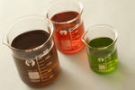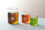 Three lab beakers with universal pH indicator-9940