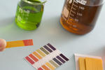 Beakers with acid solution and ph litmus paper-9978