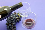 Two glasses of red wine with a bunch of grapes-9337