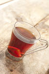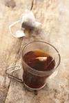 Hot black tea steeping in a glass mug-9340