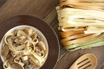colorful pasta on rustic table-9478