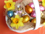 Easter basket with assorted eggs and daffodils-9913