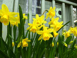 Cheerful bright yellow daffodils in a planter box-9908
