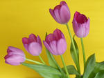Three purple tulips on yellow background-9919
