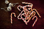 Pile of Christmas candy canes with bells-9201