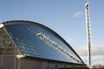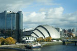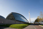 Exterior view of the Glasgow Science Centre, with IMAX cinema, Science Mall and Glasgow Tower building