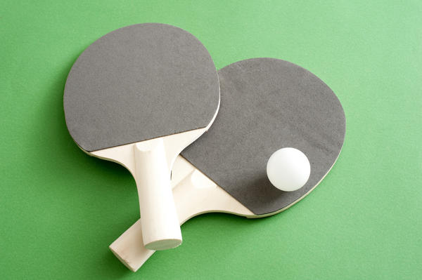 Table tennis bats and a ball-8921