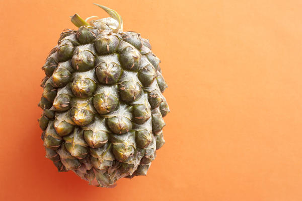 A whole pineapple isolated on orange-9694