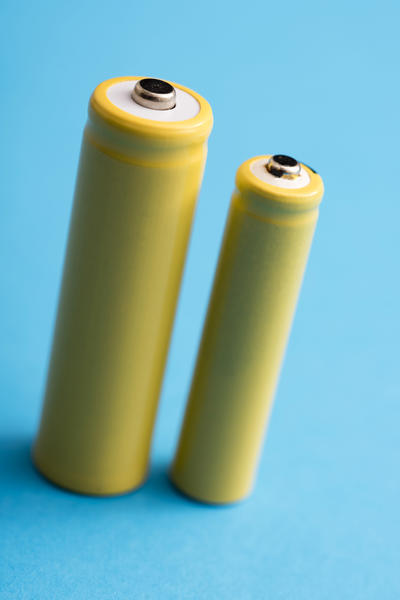 Two batteries standing on blue-9721