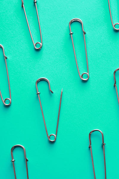 Safety pins, one open green copy space-9722