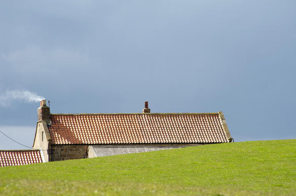 red, building, roof, rural, home, house, architecture, tiles, grass, hill, structure, meadow, skyline, tiled, hidden