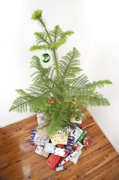 festive, christmas, seasonal, xmas, christmas tree, fir, pine, indoor, wood, floor, high angle, wide angle