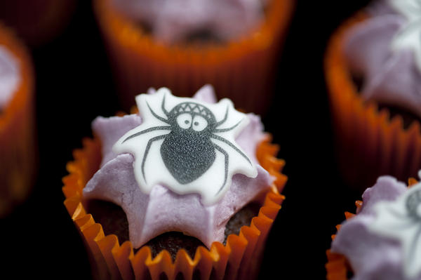 halloween, trick or treat, spoder, cake, natow depth of field, closeup, small, mini, cupcakes, iced, decorated, orange, black, creepy, spooky