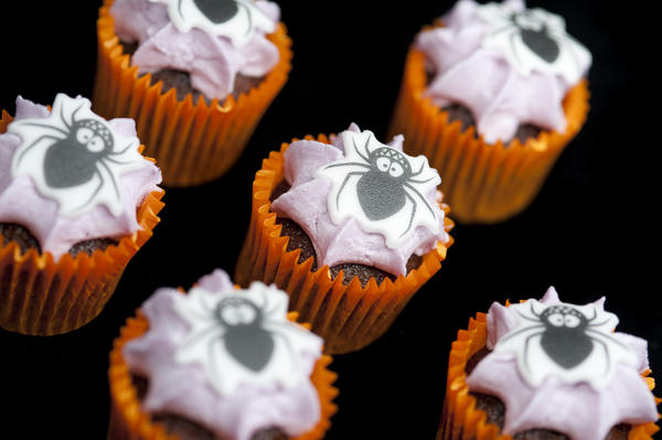 halloween, trick or treat, organe, black, colorful, sweet, desert, cake, cupcake, orange, spider, motif, decoration, stencil, icing License: