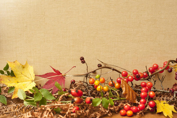 halloween, autumn, autumnal, background, berries, copyspace, fall, red, yellow, foliage, leaves, season, colors, nature, textured License:
