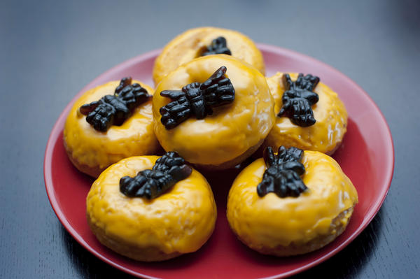 baking, cake, cuisine, decoration, doughnut, food, halloween, iced, jelly, orange, party, plate, serving, spider, trick-or-treating License: