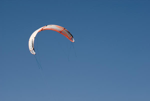 kite surfing power kite pictured against a clear blue sky