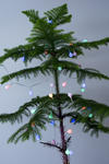 Twinkling lights on a small natural Christmas tree-9627
