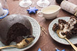 Christmas pudding served with brandy sauce-9628